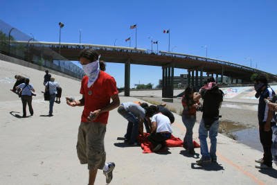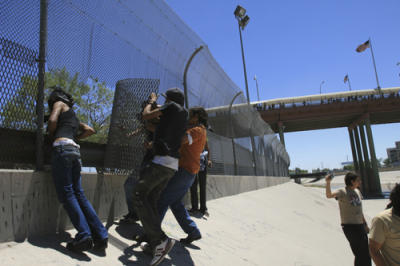 A group of young people demonstrated on the Rio Grande near the Santa Fe bridge Saturday to protest the fatal shooting Monday of a 15-year-old Juárez boy a U.S. Border Patrol agent. The demonstrators appeared to have crossed the Rio Grande and attacked the international fence on the U.S. side of the border. The demonstrators also cut a hole in the fence.